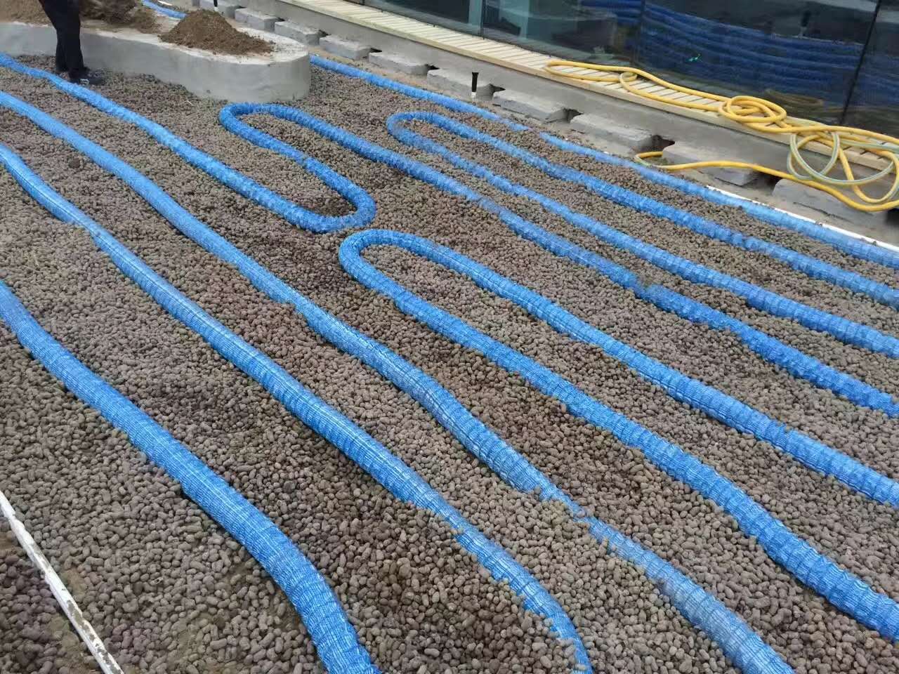 下面就来介绍一下软式透水管处理软地基的方法:该方法以软式透水管为透水体,将软式透水管埋设于以一定纵横间隔距离布设有桩孔中,在软基表面开挖平行土沟及可沟通各平行土沟的交叉土沟,并在各土沟内水平埋入软式透水管,水平透水管与对应桩孔内的竖直透水管之间及水平相交的各软式透水管之间分别连接相通,形成互通的管路系统,将真空泵与管系的抽出口连接,抽除土层水。本法软基固结期短,软基处理成本降低。