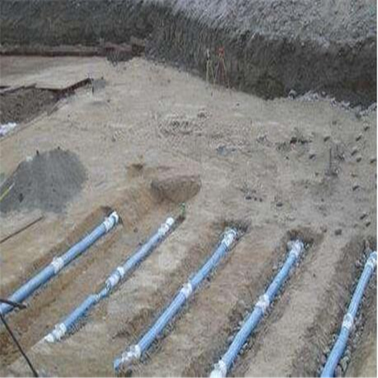软式透水管支撑体为高强度钢丝圈,具有较高的强度,可承受一定的覆土重压。先将其两端加以固定,然后再填覆土,可避免软式透水管由于受不均匀水平推力而倒管。