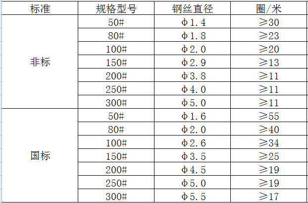 国标软式透水管和非标软式透水管的区别有两个方面,钢丝直径,一米钢丝的圈数,详细区别见下图